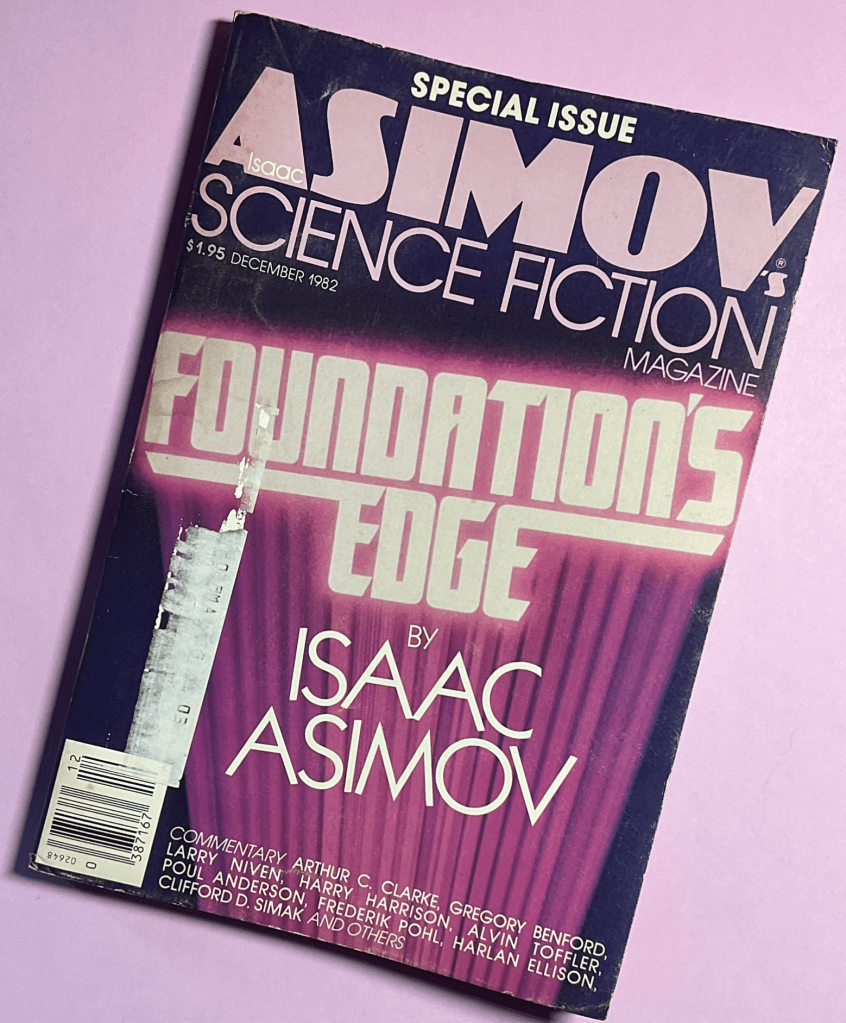 I remember what a big deal this was: the first Foundation novel in thirty-two years! But here’s something I didn’t remember or, more likely, wasn’t aware of at the time. Unsurprisingly, Asimov’s Science Fiction Magazine thought it was a pretty big deal too. So much so that the centerpiece of their December 1982 issue is the first two chapters excerpted from the book.