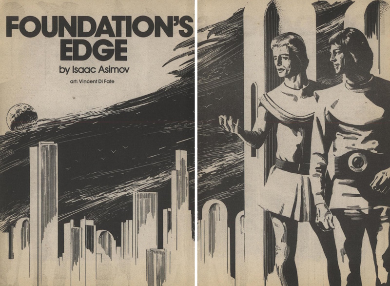 There are three nice images drawn by Vincent Di Fate. The first is the opening two-page spread of the excerpt.