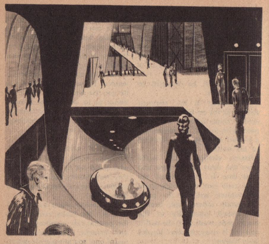 If you’re interested in how the artwork in Galaxy developed, take a look at our coverage of The Caves of Steel which appeared in Galaxy two and a half years later.