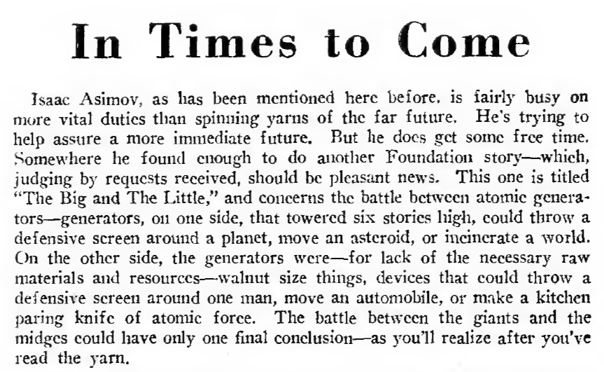Of course, we now know “Bridle and Saddle” as “The Mayors,” the title it was given in Foundation.